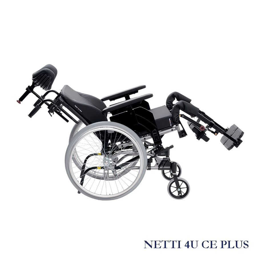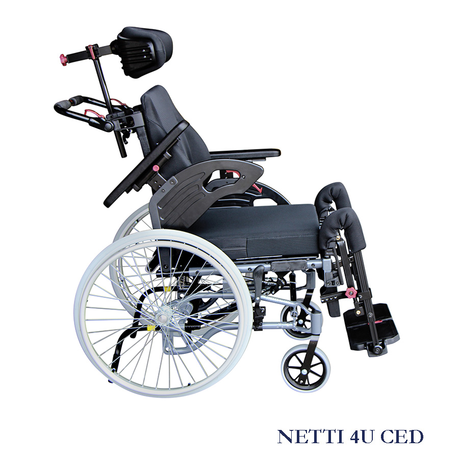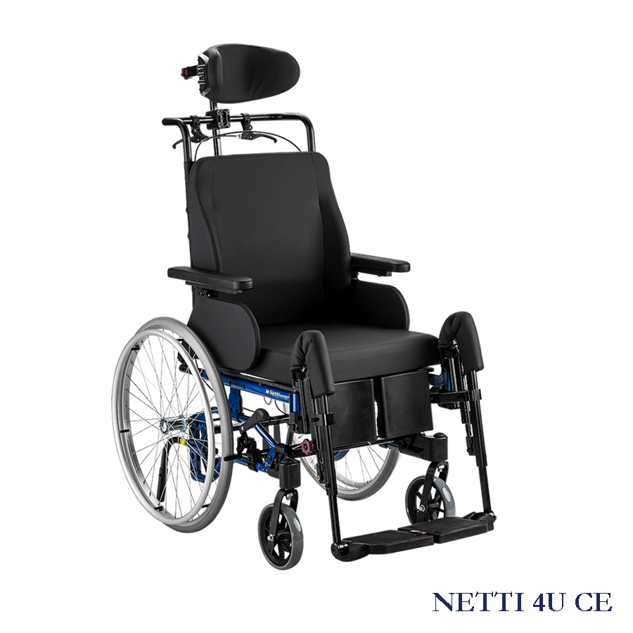 WSKAZANIA: Netti 4U jest wielofunkcyjnym wózkiem inwalidzkim przeznaczonym dla osób z częściową lub całkowitą niepełnosprawnością ruchową i/lub umysłową. Zapewnia to środki, dzięki którym osoba niepełnosprawna, która wymaga możliwości zmiany pozycji siedzącej z aktywności na odpoczynek skorzysta z funkcji pochylania i odchylania. Jest przeznaczony dla użytkowników potrzebujących komfortu i ulgi. Połączenie system siedziska z ergonomicznym rozwiązaniem w konstrukcji ramy oferuje wiele możliwości adaptacji i regulacji. Niepełnosprawność może mieć wiele przyczyn. Netti III posiada regulację kąta nachylenia siedziska i oparcia, pozwala zatem na zmiany pozycji użytkownika, dla zwiększenia mobilności lub w celu korekty postawy (stabilizacji), kiedykolwiek jest to niezbędne ze względu na poniżej wymienione ograniczenia funkcjonowania niezależnie od przyczyn ich występowania: • Ograniczenie lub brak możliwości ruchowych • ograniczenie lub brak siły mięśni • ograniczenia zakresu ruchów • brak lub ograniczenie stabilności • porażenie połowiczne • zaburzenie reumatoidalne • urazy czaszkowo-mózgowe • amputacje • inne neurologiczne lub geriatryczne zaburzenia.