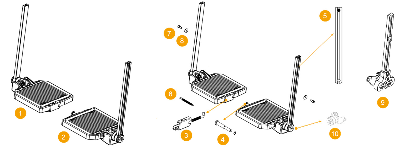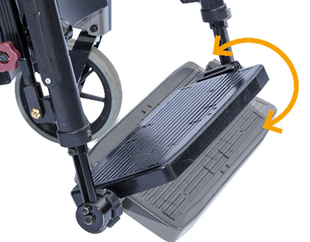 Możliwość dopasowania kąta stopnia podnóżka oraz jego głębokości (opcjonalnie) pozwala na dopasowanie pozycji stopnia podnóżka do potrzeb użytkownika. Jako opcja występuje również jednoczęściowy, odchylany stopień podnóżka z blokadą. |