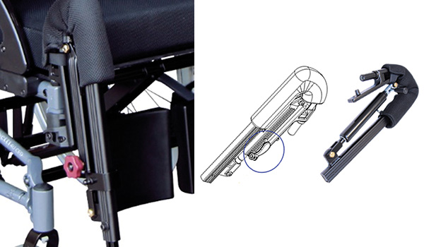 Standardowo wózek wyposażony jest w dzielony, łączony, blokowany stopień podnóżka. Rozwiązanie to zapewnia większą wytrzymałość podnóżków i całego ich systemu montażu w przypadku osób np. ze spastyką. Dzielony stopień podnóżka ułatwia również wsiadanie/wstawanie użytkownikowi, który przy pomocy opiekuna jest wstanie stanąć na nogi. |